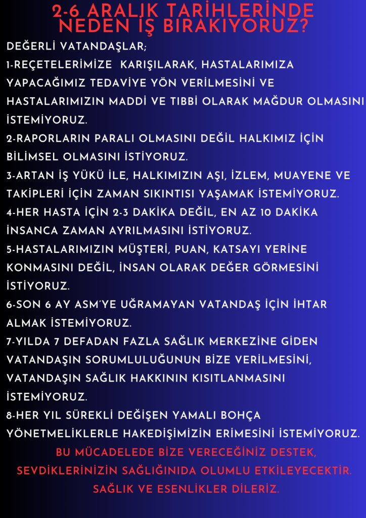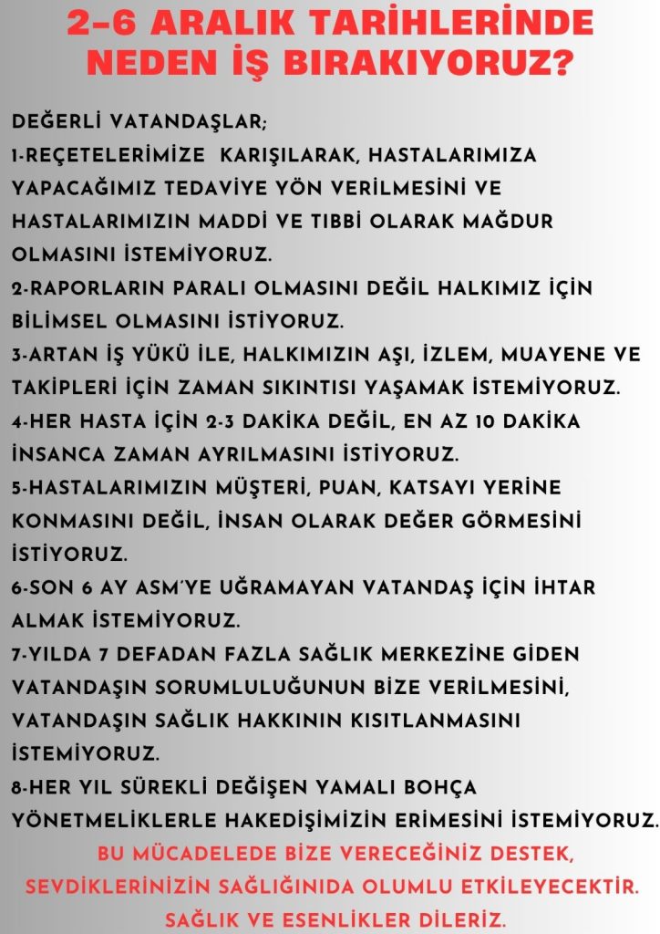 3-Artan iş yükü ile, halkımızın aşı, izlem, muayene ve takipleri için zaman sıkıntısı yaşamak istemiyoruz.
