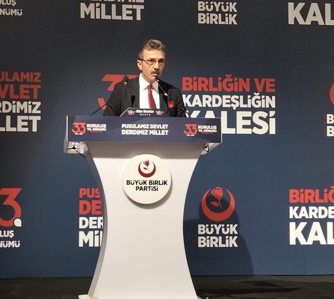 “Kurucu liderimiz, dava adamı merhum Muhsin Yazıcıoğlu’nu rahmet, minnet ve özlemle anıyoruz. Genel Başkanımız Mustafa Destici liderliğinde; milletimiz, devletimiz ve değerlerimiz için aynı inanç ve kararlılıkla çalışmaya devam edeceğiz. Büyük Birlik Partimizin 33. kuruluş yıl dönümü kutlu olsun.”