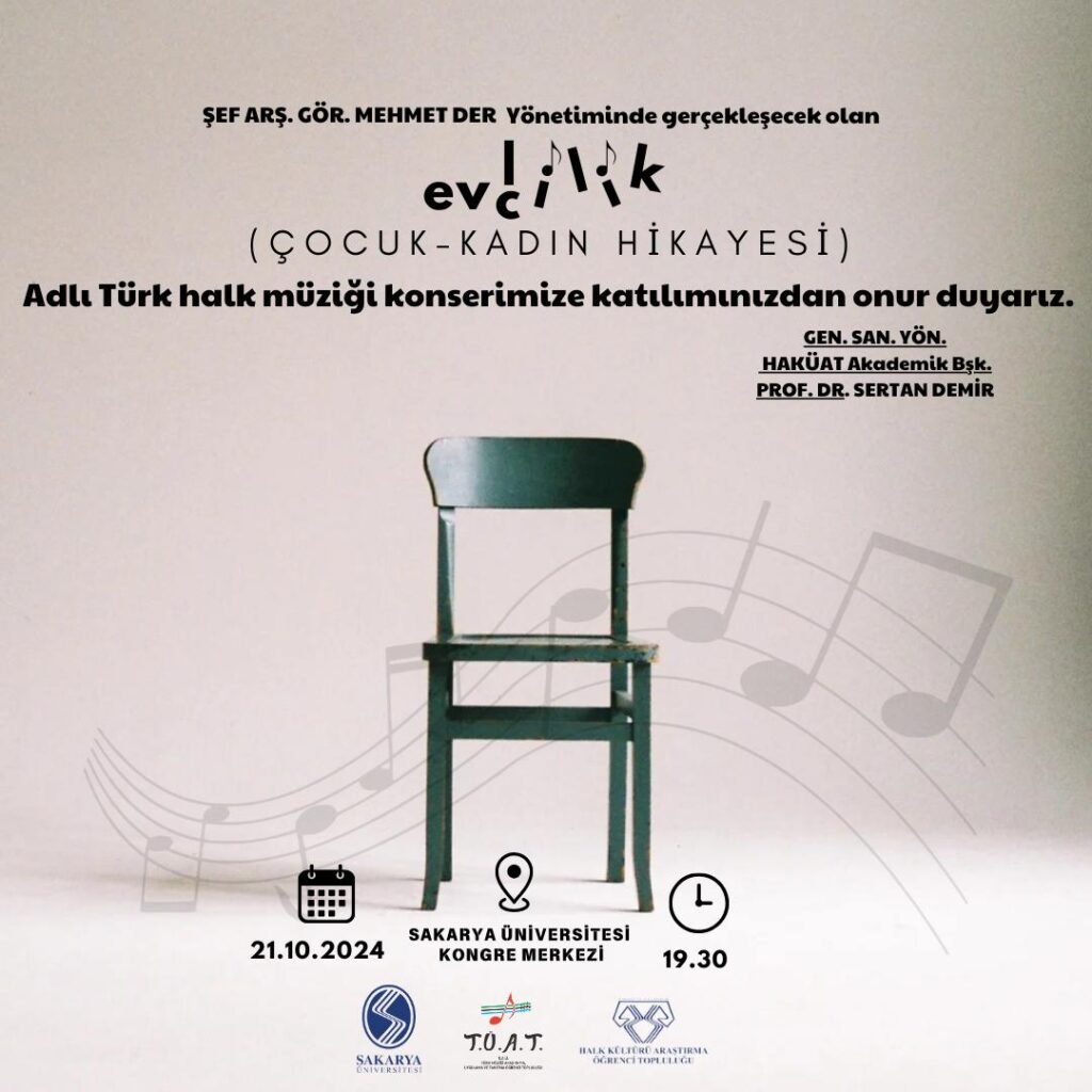 21 Ekim pazartesi saat 19.30’da Arş. Gör. Mehmet Der şefliğinde ve Prof. Dr. Sertan Demir’in Genel Sanat Yönetmenliğinde gerçekleştirilecek olan “Türk Halk Müziği Çocuk – Kadın Hikayesi” temalı konser, Türk halk müziği severleri unutulmaz bir akşamla buluşturacak. Konser, Anadolu’nun zengin kültürel mirasını yansıtan ezgilerle, kadın ve çocuk hikayelerini sahneye taşıyacak.