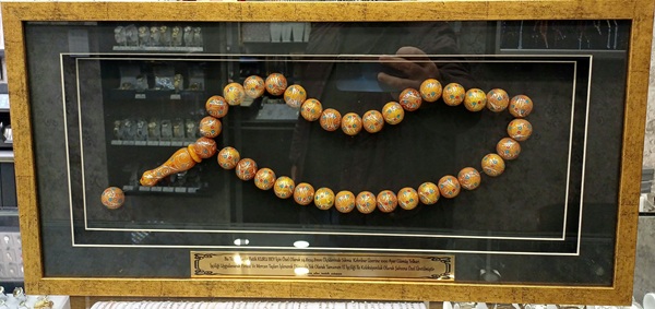 Fatih Ünal, ürettikleri tesbihin tamamen özgün bir eser olduğunu vurgulayarak şu ifadeleri kullandı: “Tesbihimiz, bugüne kadar hiç üretilmemiş bir model. İlk kez tarafımızca üretildi. Ölçüleri 24.8 mm x 24.8 mm olan dev boyutlardaki bu tesbih, koleksiyonluk olarak tasarlandı. Her tanesi telkari şeklinde bin ayar gümüşle işlenerek nakkaş desenleri atıldı. Üzerine firuze ve mercan taşları işlendi. Bu boyutta ve bu detayda bir tesbih dünyada ilk kez yapıldı.”