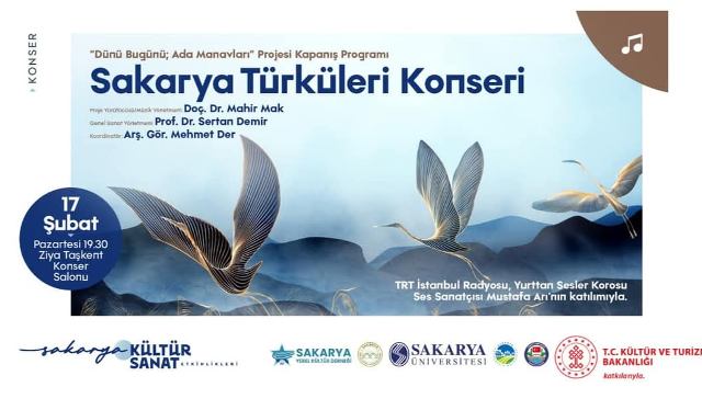 Derlenen Sakarya Türküleri, 17 Şubat 2025 Pazartesi günü saat 19:30’da, Sakarya Büyükşehir Belediye Başkanlığının tahsis ettiği Sakarya’nın önemli kültür mekânlarından biri olan Kent park’taki Ziya Taşkent Konser Salonu’nda müzikseverlerle buluşacak. TRT İstanbul Radyosu Yurttan Sesler Korosu’nun katkılarıyla gerçekleşecek konserde, halk müziğinin sevilen sanatçılarından Mustafa Arı sahne alacak.