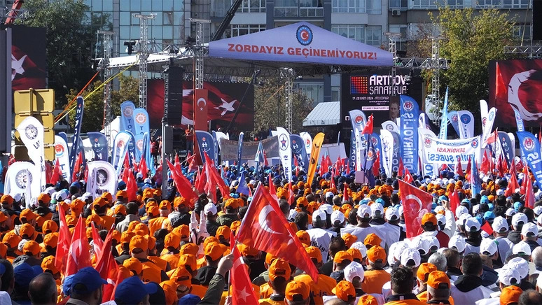 Türkiye İşçi Sendikaları Konfederasyonu (TÜRK-İŞ), bugün Ankara Anadolu Meydanı’nda, ‘Zordayız geçinemiyoruz’ sloganıyla büyük bir miting düzenledi. 81 ilden 2 binin üzerinde otobüsün Ankara’ya geldiği açıklanan buluşma son yılların en büyük emekçi mitinglerinden oldu. İşçiler tarih sahnesine çıktı. Mitingde TÜRK-İŞ Başkanı Ergün Atalay ile asgari ücretli, taşeron, emekli, kadın çalışan ve vergi mağdurları adına birer temsilci konuştu. Verilen mesajlar yeni bir dönemin başlayacağının habercisi oldu.